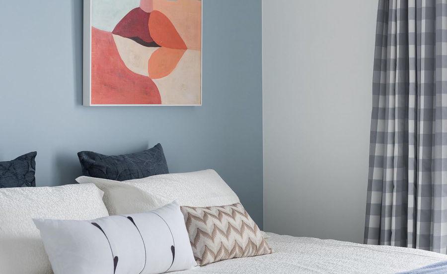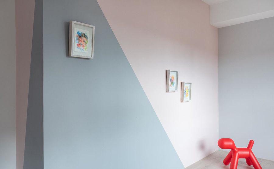 ▲ 次卧是儿童房,暂时还未入住,是以产品尚未配备,但他们装修的手艺,皆会预先决策好以后要摆放床的位置,然后将定制柜一并先作念好,等家里小一又友不错单独住的手艺,再添置一张床就够了。本人房间的面积就不大,是以墙面上只用几种心计的几何色块作念了拼色,这么,就不错在不占用空间的情况下,让空间头绪感尽量丰富起来了。