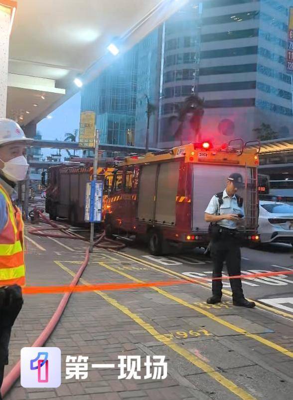 第一现场驻香港记者了解到,下昼5点50分,在港铁中环站A出口外,不错看到有巨额消防车、警车、救护车在现场,有多名衣服好营救建筑的消防员待命。