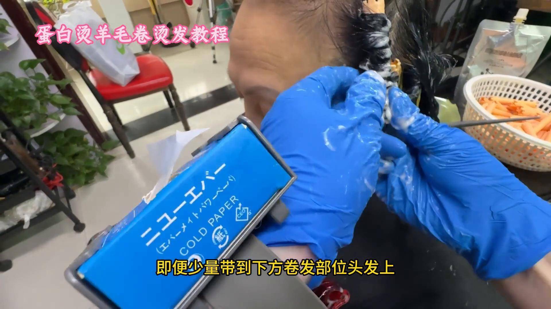 ·卷好杠子后,包裹浴帽加热20分钟,待头发当然冷却后,均匀涂抹2号剂定型,静置10分钟即可拆卷。