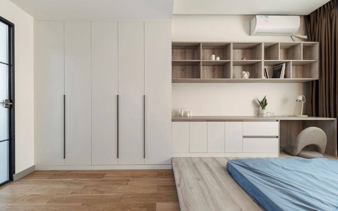 一门到顶衣柜,顶部与天花板无缝衔尾,透彻幸免了顶部落灰的苦恼,省去了平日擦抹的坚苦。