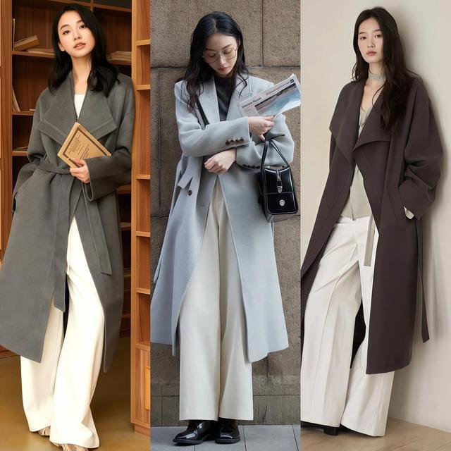Point③ 甜酷风:毛衫+大衣/风衣+阔腿裤+小低跟