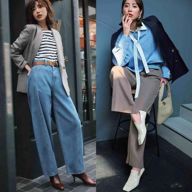 配一对尖头小低跟走的是知性优雅道路,换一对圆头乐福鞋变成文艺复旧的滋味,再换一对方头粗跟鞋又能走英伦帅气的方针,并吞条阔腿裤换不同的小低跟就能切换作风,这个可玩性太强了。