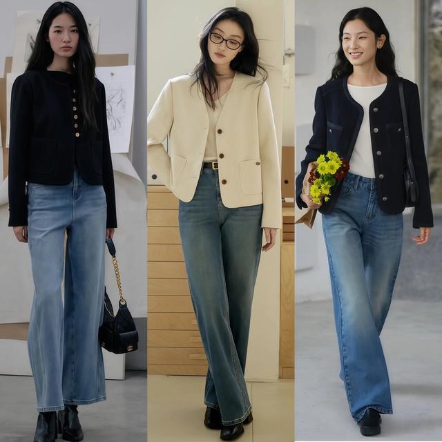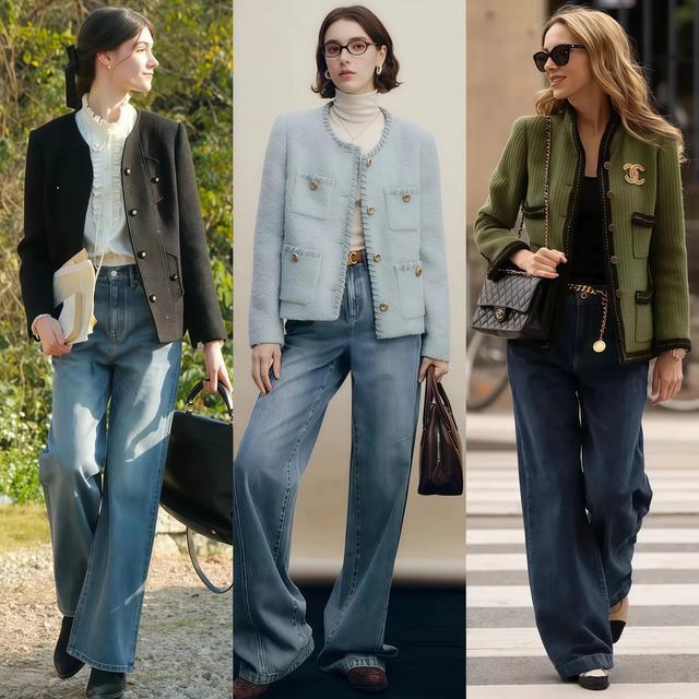 Point② 优雅风:薄款内搭+小香风外衣+阔腿裤+小低跟