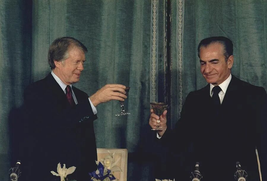 1977年卡特(左)访伊时盛赞巴列维政权为“中东踏实之岛”,但一年后伊朗爆发创新,卡特政府见势不妙遂弃之如敝履,于1979年1月默认其流一火。巴列维(右)痛斥“好意思国像扔一只死耗子相同把我扔出了伊朗”,两个月后霍梅尼归国,王朝耗损,伊斯兰共和国拔帜易帜(图源:路透社)