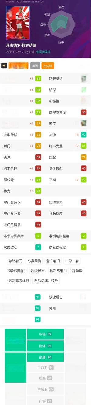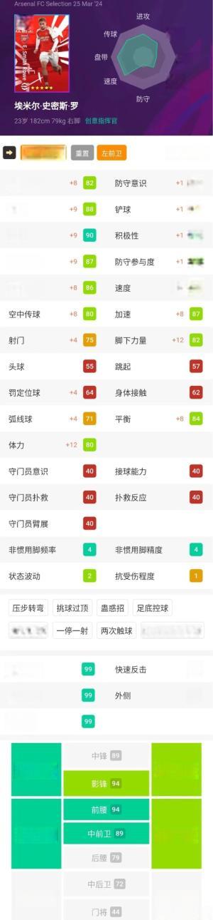 球员简析:S罗的数据除了作风和射门不太得力除外,其它关键属性齐比较优秀。