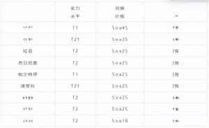 下表列出了本次9名兑换精选的实力价值(可用性等第)、兑换价值(等价黑球数目)和返券价值(大更后抵偿精选券的数目)。