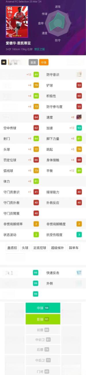 球员简析:禁区之狐这个作风在禁区外等同于无作风跑位,前插积极性不如偷猎者,何况恩凯蒂亚(精)的速率、控球和景况齐比较粗俗,导致玄虚实力一般,非队套玩家兑换的价值赫然一般。