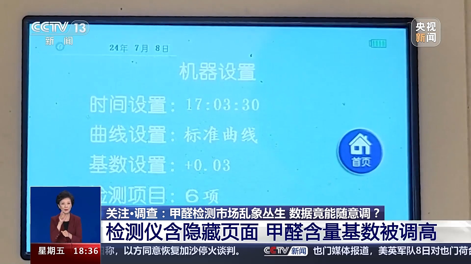7月7日,记者在森家环保官方网店购买了一次“全屋甲醛检测”工作。次日,在他抽取空气样本时间,记者灵通他带来的检测仪发现,在检测仪的一个荫藏页面中,甲醛含量的基数已被设立成了“+0.03”。森家环保的又名加盟商告诉记者,淌若检测东说念主员将基数设立为“+0.03”,不论真确数据是若干,检测禁止齐会逾越0.03mg/m³,借此疏浚客户购买甲醛络续工作。2023年10月,薛超成为森家环保在河北省雄安新区的加盟商。7月26日,薛超告诉记者,他接到了森家环保总部派的一个络续订单,客户线上购买了2879元的“120平米上门除甲醛套餐”,其中包含甲醛检测和络续工作。