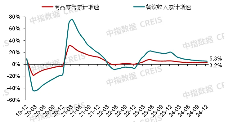 图:2019年12月-2024年12月商品零卖及餐饮收入累计同比增速