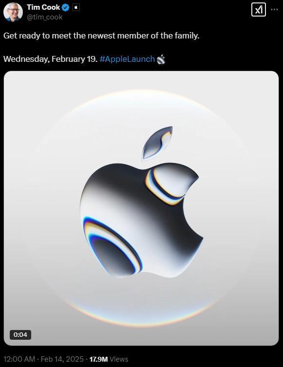 2月14日,库克官宣会在2月19日发布新品(国内应该便是2月20号,周四)。