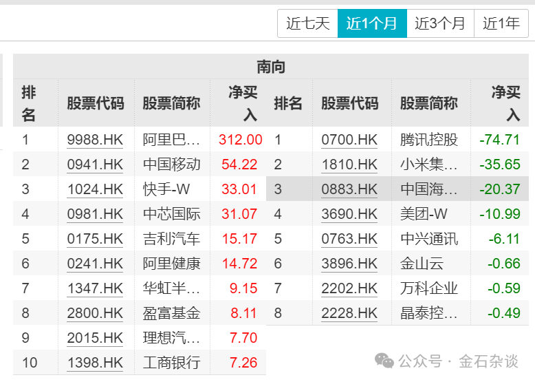 固然说腾讯、小米抓续暴涨,近1月资金却有所流出,部分资金可能在高位礼聘赢利为安;而资金涌入的则是阿里、中国出动、快手、中芯外洋、祯祥汽车、华虹半导体等,其中资金荒诞涌入阿里300亿。