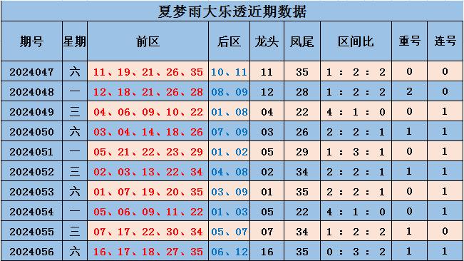 大乐透上期开奖奖号:前区16 17 18 27 35 ,后区06 12,前区号码区间比0:3:2,重号17,连号16 17 18。